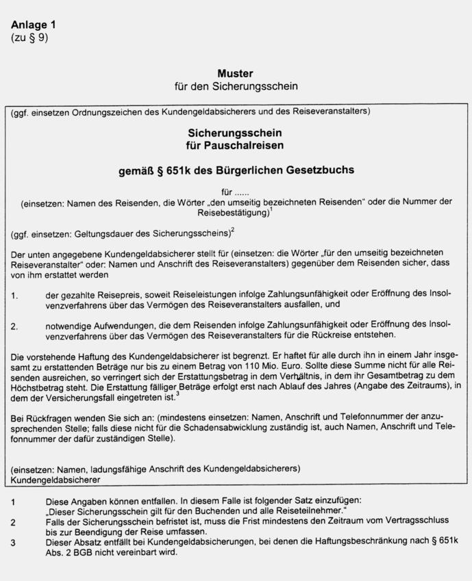 § 9 Muster für den Sicherungsschein