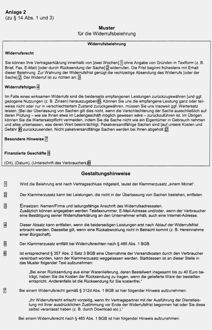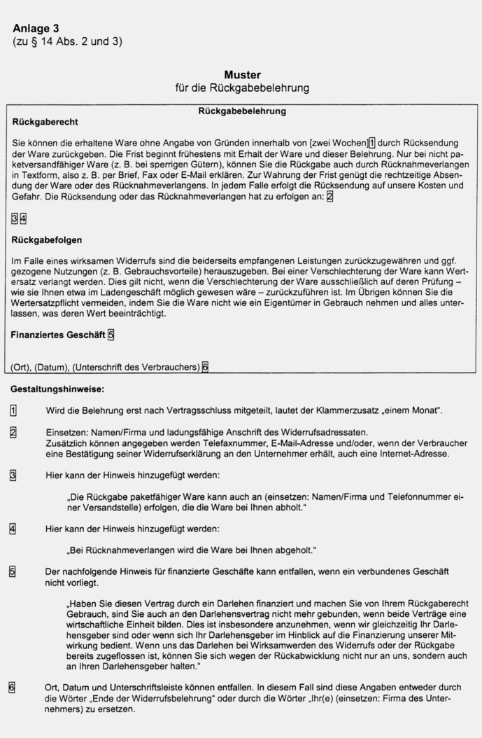 § 14 Form der Widerrufs- und Rückgabebelehrung, Verwendung eines Musters